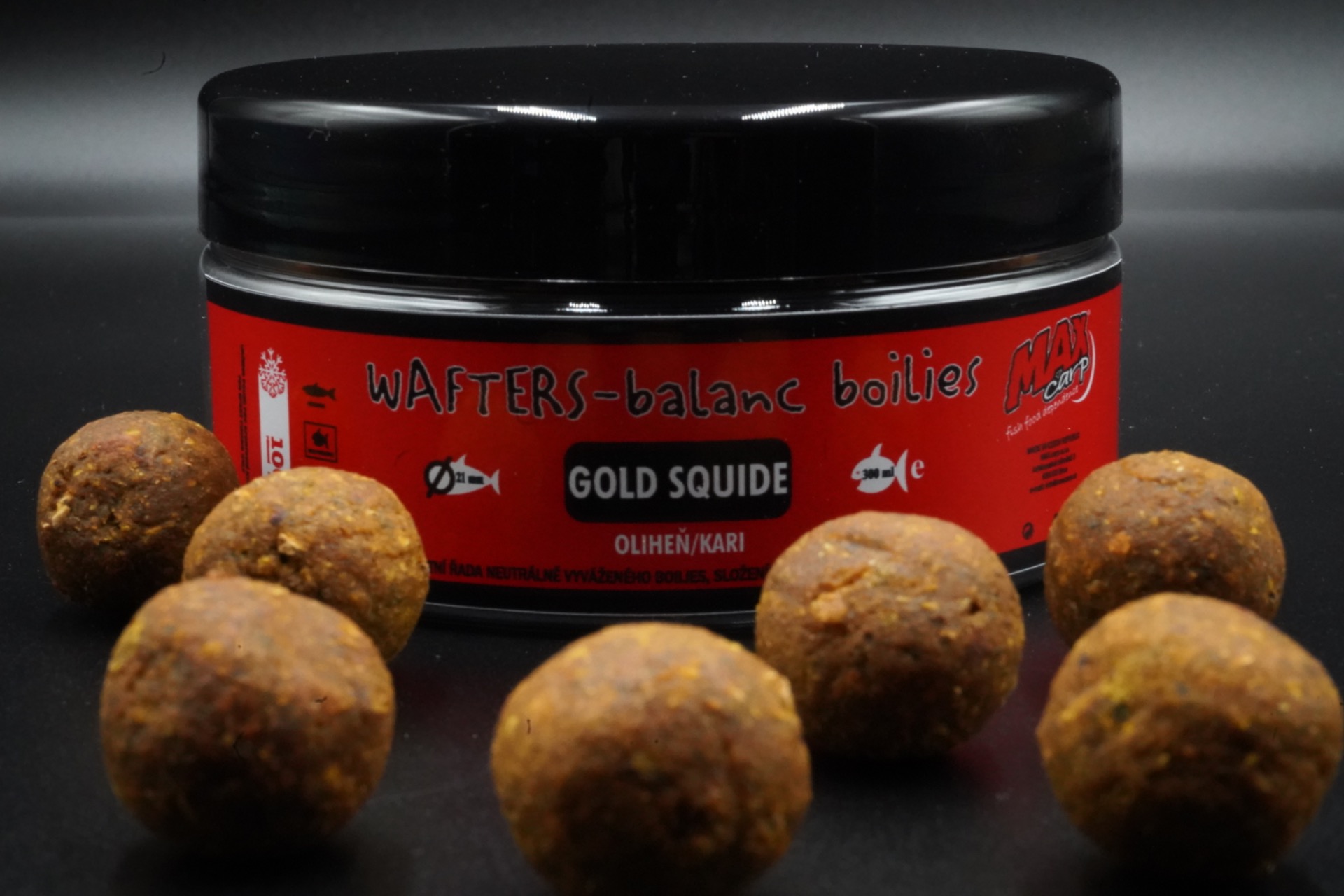 Odľahčené nástrahy GOLD-SQUID WAFTERS sú ľahšie o 1/3 v porovnaní so štandartnými potápavými boilies. Nižšou hmotnosťou dokáže táto excelentná nástraha eliminovať príťaž háčika a časť koncovej montáže. Tým sa stáva silnou zbraňou pre skúmavé a ostražité jedince. Waftersky jemne dosadajú na dno a nezapadajú do sedimentu tak, ako bežné boilies. Svojim vzhľadom, vôňou či chuťou sú absolútne identické a na pohľad nerozoznateľné od štandartných boilies.