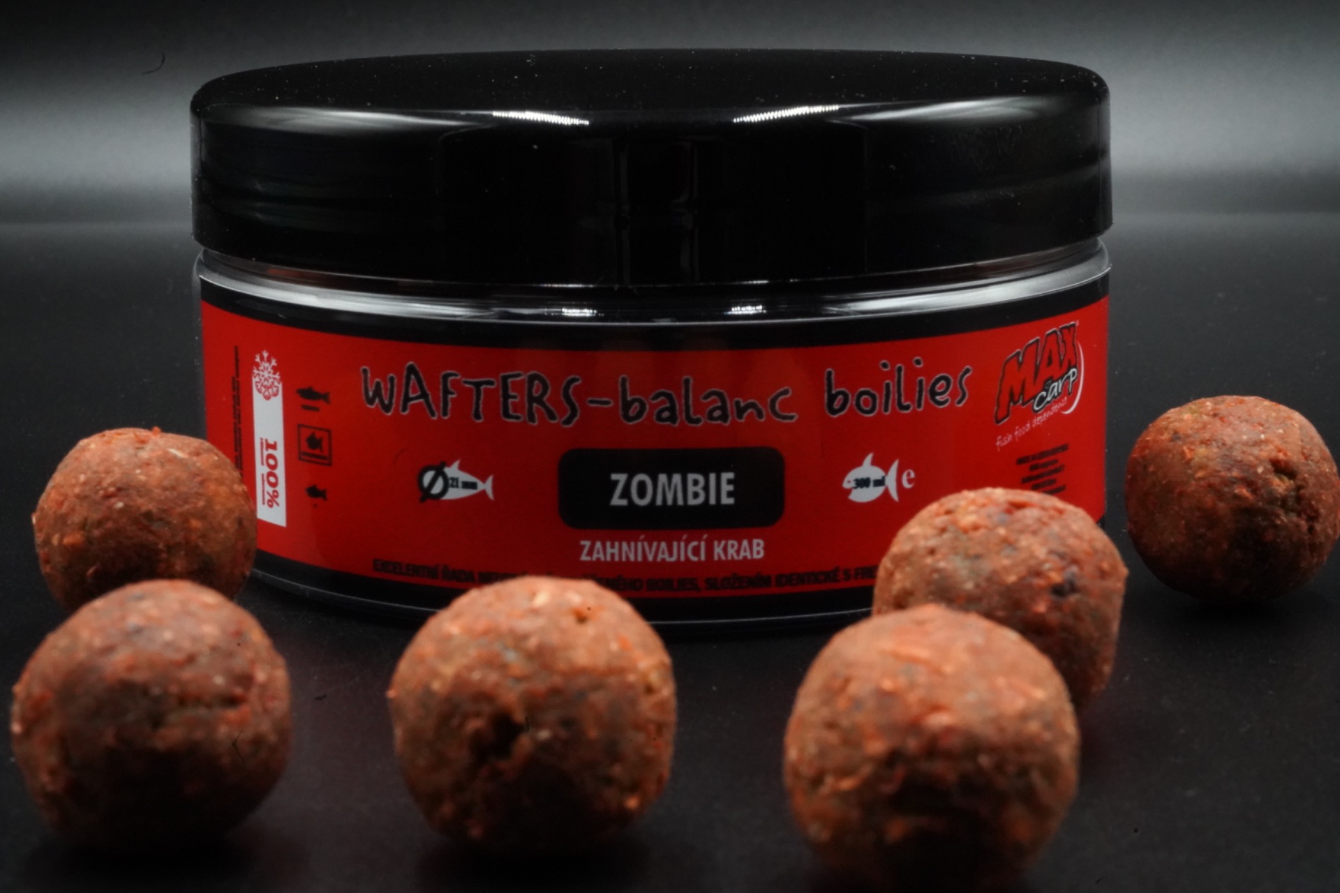 Odľahčené nástrahy ZOMBIE WAFTERS sú ľahšie o 1/3 v porovnaní so štandartnými potápavými boilies. Nižšou hmotnosťou dokáže táto excelentná nástraha eliminovať príťaž háčika a časť koncovej montáže. Tým sa stáva silnou zbraňou pre skúmavé a ostražité jedince. Waftersky jemne dosadajú na dno a nezapadajú do sedimentu tak, ako bežné boilies. Svojim vzhľadom, vôňou či chuťou sú absolútne identické a na pohľad nerozoznateľné od štandartných boilies.